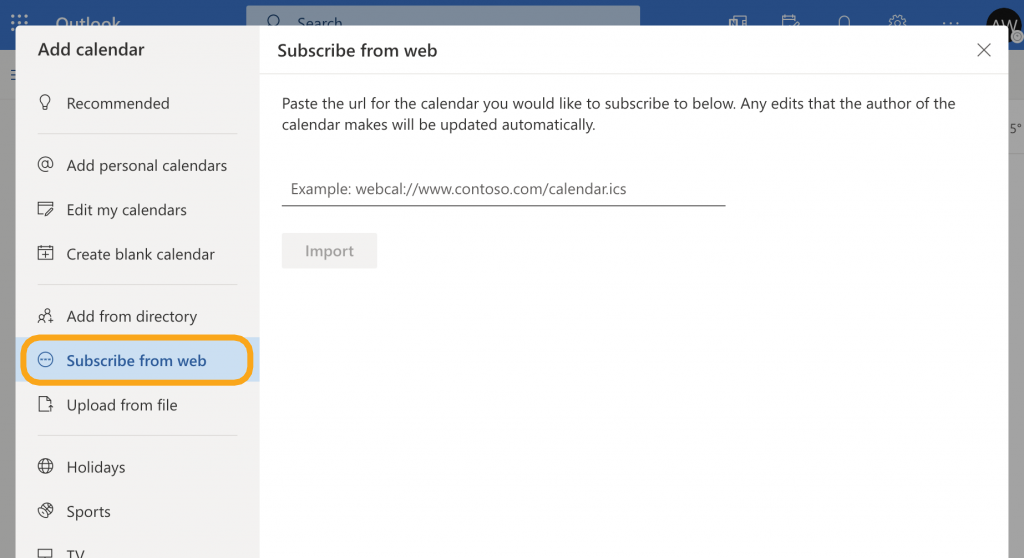 Cole o URL que copiou na caixa de entrada e clique em “Add Calendar“.