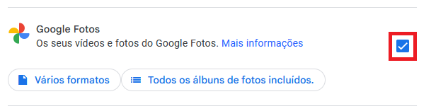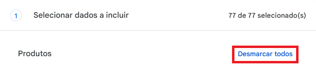 2. Por omissão, todos os produtos Google encontram‑se selecionados.