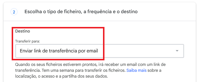 ⚠️ Após a conclusão da exportação, é enviado um e‑mail com a ligação para descarregar os ficheiros, válida por 7 dias. Caso o prazo expire, será necessário criar uma nova exportação no Google Takeout.