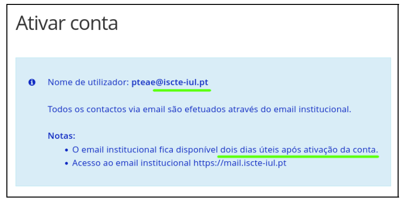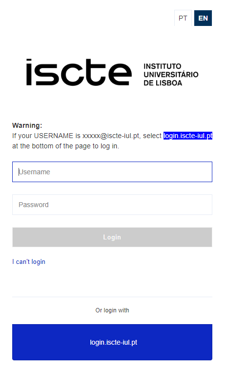 TIP: Access to Iscte’s internal information systems and Office 365 will be available 48 hours after the account is activated. The page to authenticate and access the applications is: https://login.iscte-iul.pt/.