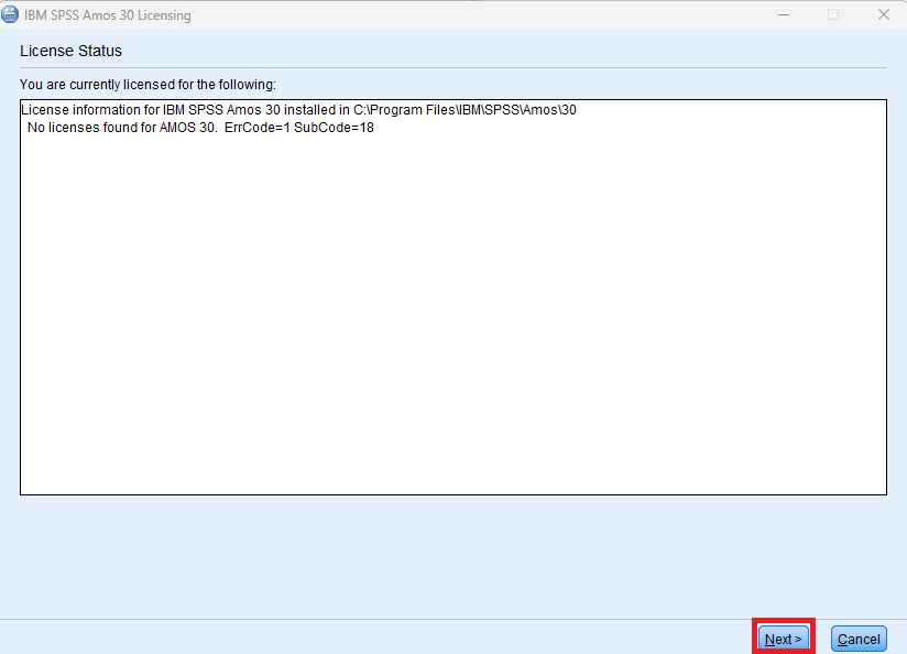 Issue: If you receive this type of error when activating your IBM SPSS Amos license: