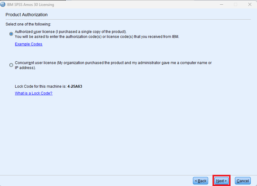 - Under “Product Authorization” select the first option “Authorized user license…” and then click “Next”.