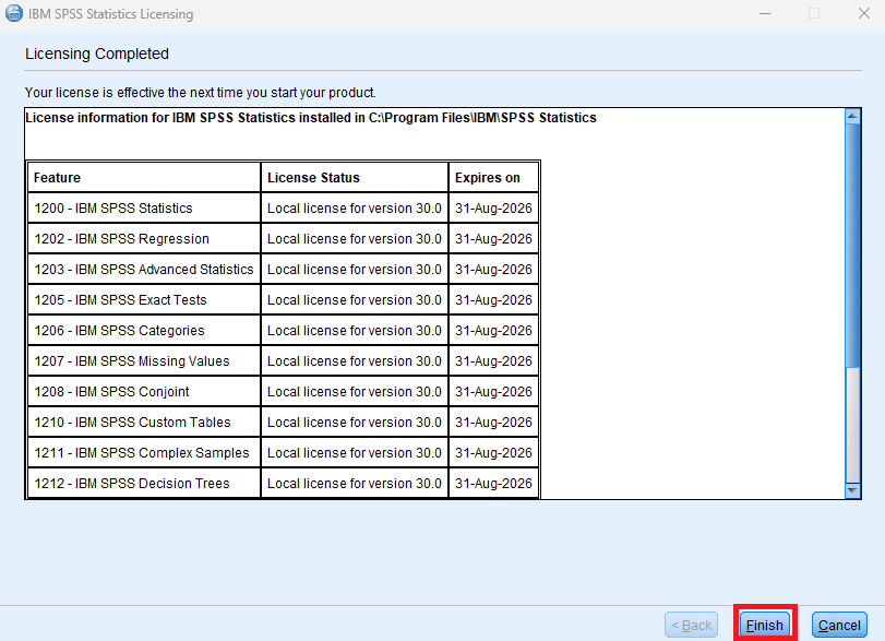 - Find and access the folder where IBM SPSS Statistics is installed.