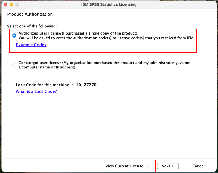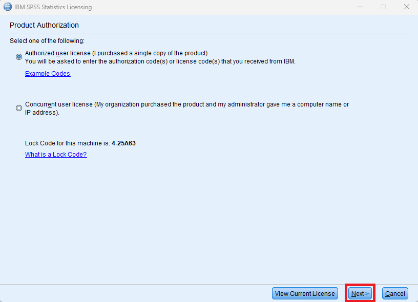 - Under “Product Authorization” select the first option “Authorized user license…” and then click “Next”.