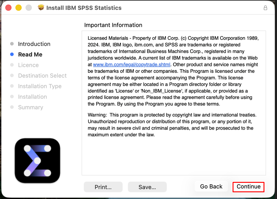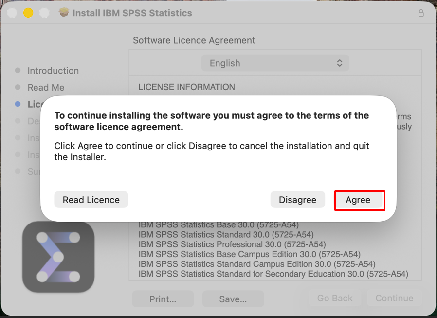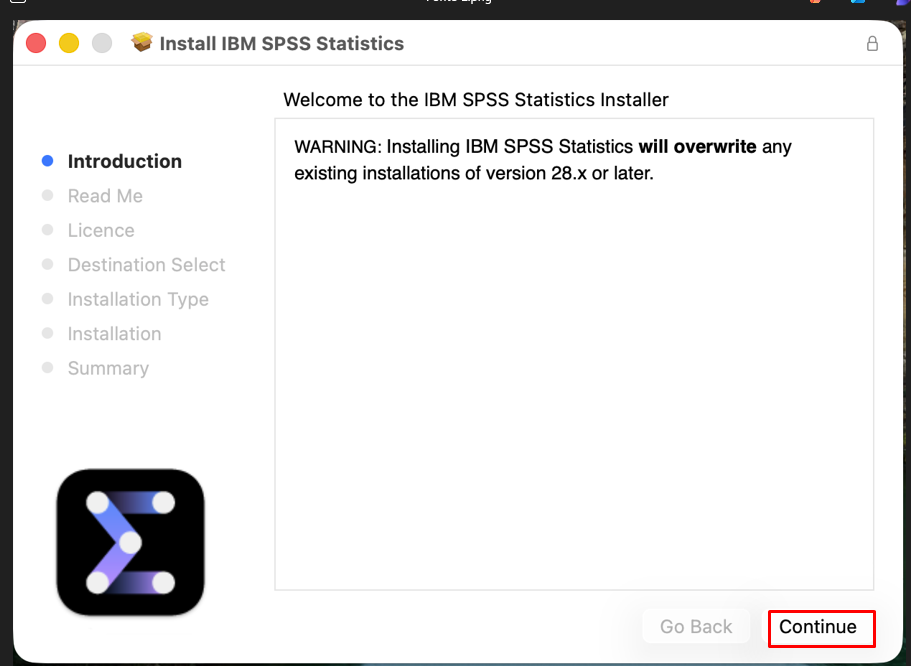 - Start the installation by double-clicking on “SPSSSC_30.0.0.0_Mac_OS.pkg”.