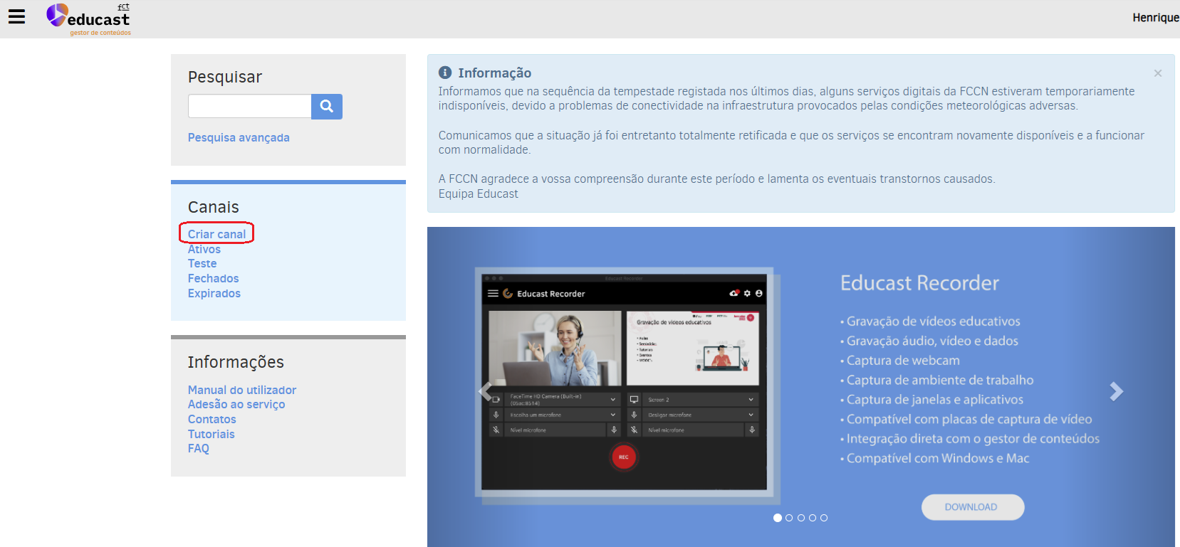 - Lecture recording (streaming, desktop e mobile) – Permite descarregar os vídeos.