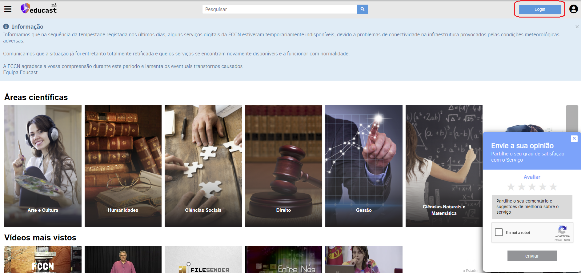 - Clicar no botão “Login” no canto superior direito da janela do browser.