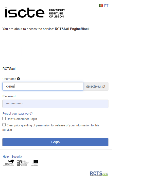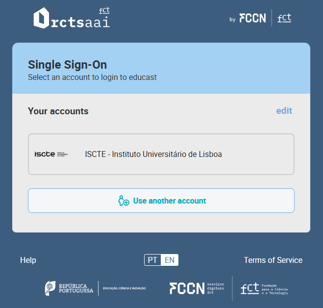 - Efetuar autenticação federada (SSO) usando as credenciais da conta do Iscte (e.g., xxnes@iscte-iul.pt e respectiva palavra-passe).
