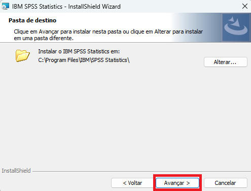 - Em “Pasta de destino”, clicar em “Avançar”.
