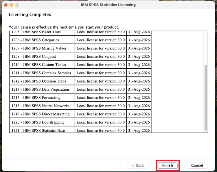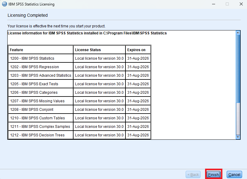 - O IBM SPSS Statistics 29 está agora pronto a ser utilizado.